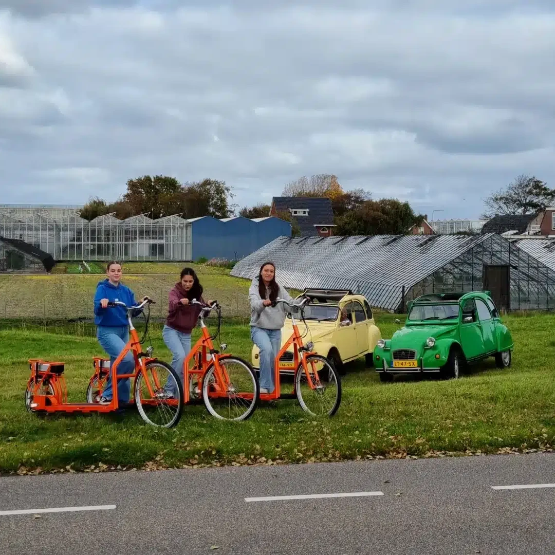 Een uitje bij Westland op Weg is dé route naar plezier: kies voor een tourtocht of arrangement met een grappige 2CV (Lelijke Eend) of een stoere loopbandfiets.